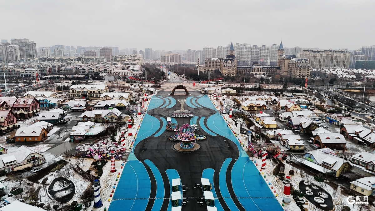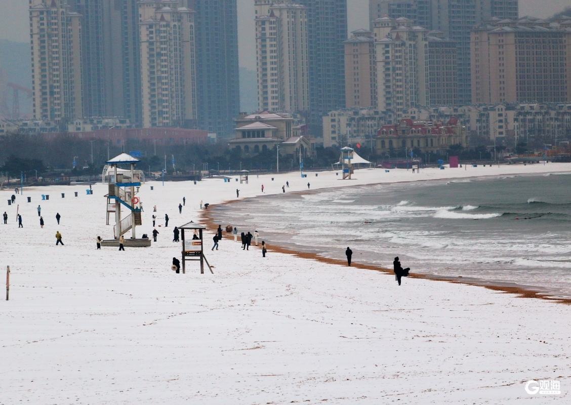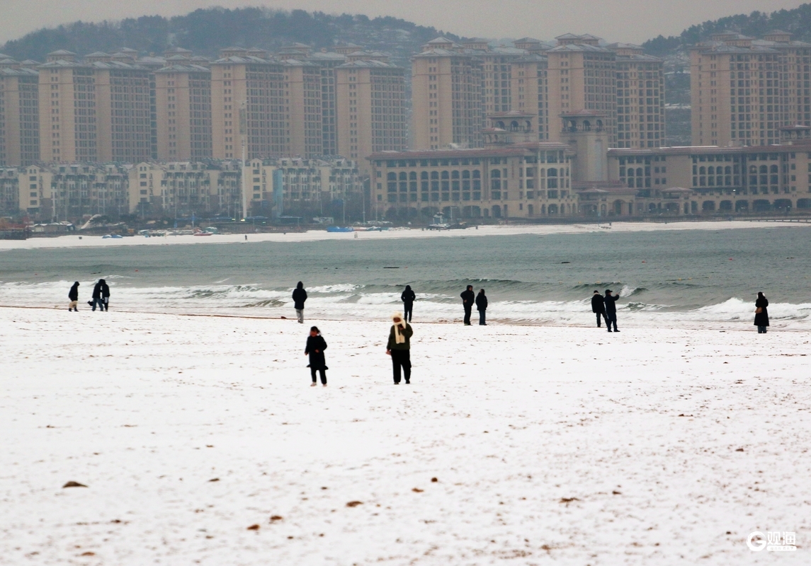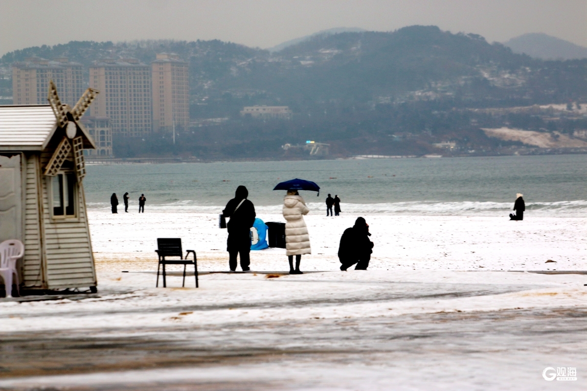 不遠處的金沙灘啤酒城更成了童話秘境,紅瓦建筑戴上松軟雪冠,星光大道兩側的雕塑被白雪輕裹,宛如闖入冬日限定的歐式小鎮。游客們踏著碎雪漫步,有人定格雪海同框,有人在啤酒城的光影中打卡,寒風里的歡聲笑語為雪白注入暖意。這里藏著青島獨有的“雪與海、童話與煙火”的雙重浪漫。(青島日報/觀海新聞記者 梁超 攝影報道)