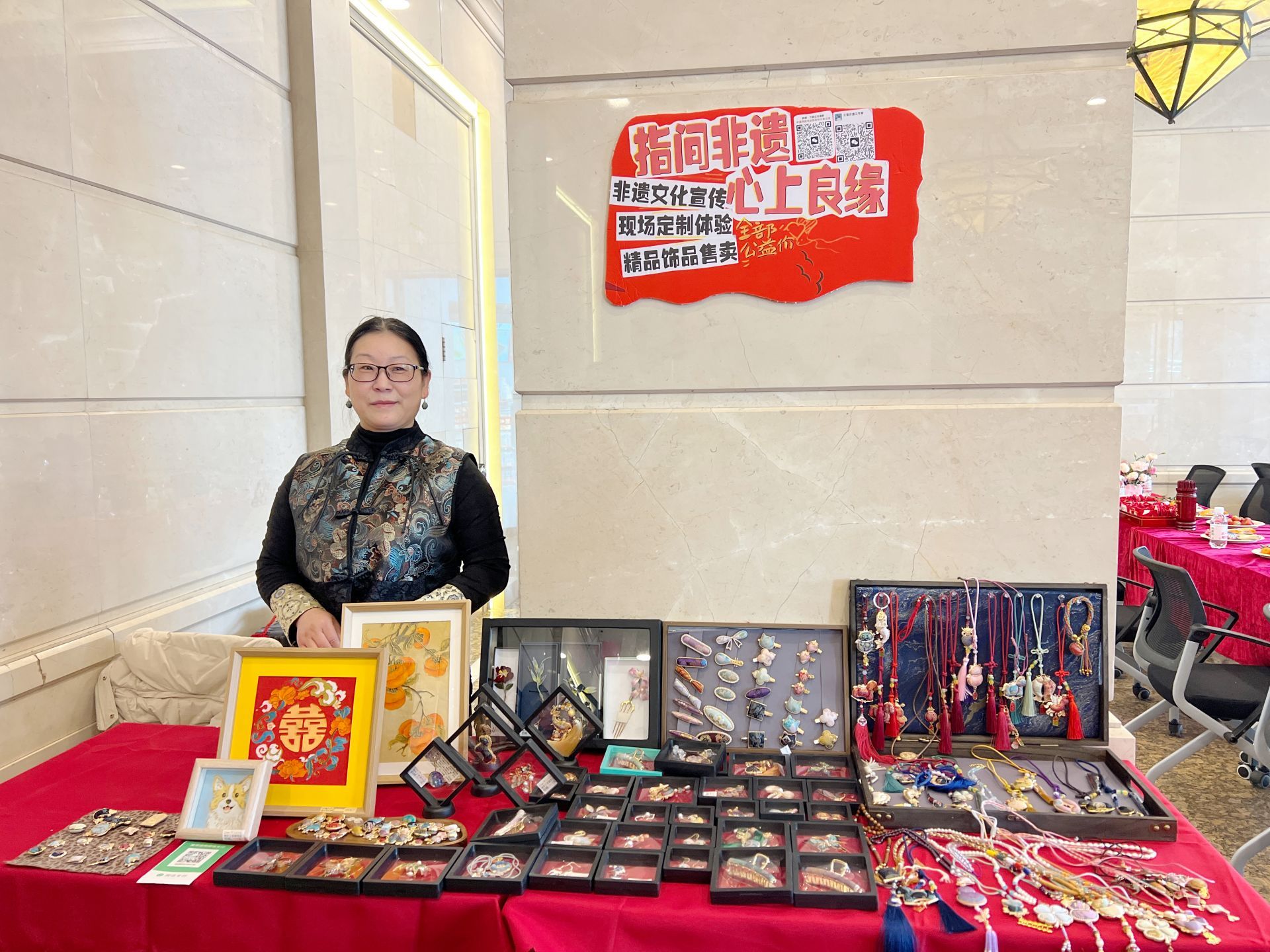 活動現場,市南區民政局還針對市南區婚姻家庭公益慈善服務項目進行推介,金湖路街道亢家莊社區“幸福家”文化書院還帶來了宋錦、螺鈿、藍染等品類豐富的非遺手作。