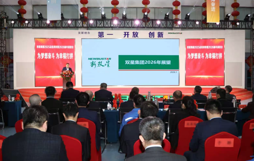 近日,雙星集團2025總結表彰暨2026新年展望會在雙星國際會議中心舉行。會上,總裁張軍華報告了雙星集團2025年度經營情況和為員工辦的實事。各產業負責人分別作了2025年工作總結和2026年展望。大會還發布了“2025年雙星集團十大亮點”,并為趙衍剛、王磊、柳宇辰等“領軍人物”“先進工匠”“新星”以及“重大創新突破”“領軍團隊”“先進團隊”等頒發了獎杯和證書。雙星集團董事長柴永森作了新年展望,對集團2026年指導方針和戰略重點等進行了具體部署。