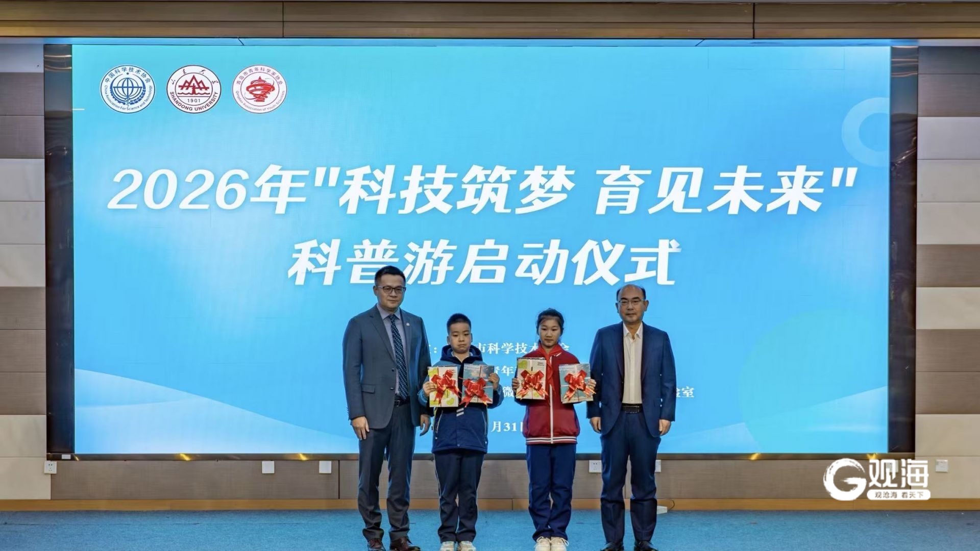 啟動儀式上,與會領(lǐng)導向?qū)W生代表贈送了《1分鐘微生物》《食在海洋》等科普圖書,播放了2025年高校科普游精彩回顧短片。