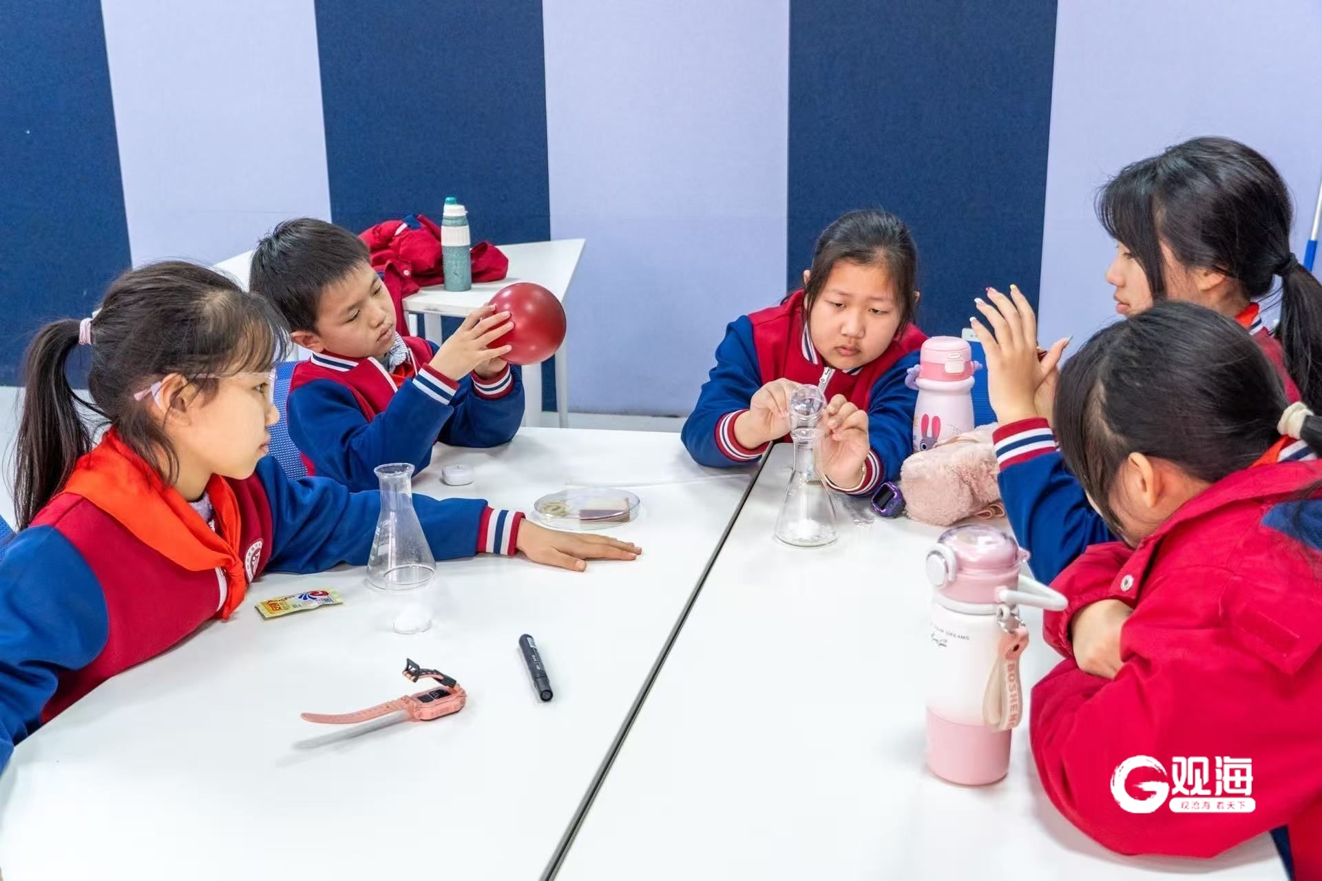 6. 青島科技大學——化學主題:參觀無機、分析、有機、物化四大基礎(chǔ)教學實驗室并聆聽化學發(fā)展史講解,用彩色蘿卜、紫色甘藍等天然材料做pH指示劑觀察酸堿變色反應(yīng),通過金屬鹽與硅酸鈉反應(yīng)打造“水中花園”,玩轉(zhuǎn)奇妙化學,感受分子的魅力。