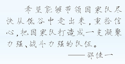 答:我非常理解球迷現在的心情。球迷對待國家隊的態度,就像我們輔導自己的孩子寫作業,寫得不好時,會有種恨鐵不成鋼的心態。作為國家隊主教練,這是一種動力,督促我更好地完成自己的工作。