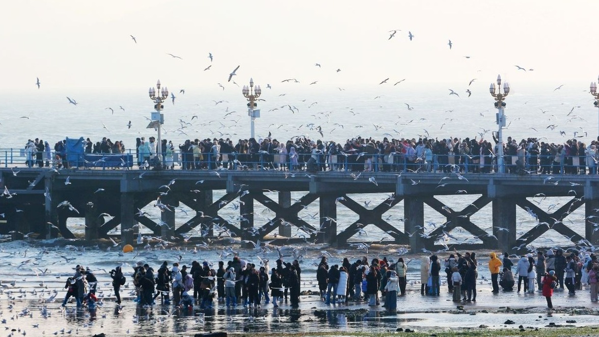 “冬游青島”邂逅海鷗,享受城市浪漫
